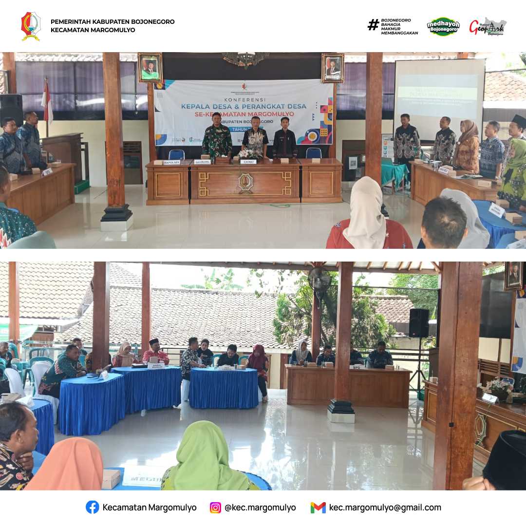 Pada hari Kamis, 27 November 2025 pukul 10.00 WIB di Balai Desa Margomulyo, Kecamatan Margomulyo diadakan Konferensi Kepala Desa dan Perangkat Desa Se-Kecamatan Margomulyo Kabupaten Bojonegoro Tahun 2025 dihadiri oleh Camat Margomulyo (Di wakili Kasi Pemerintahan), Ndanpos Ramil (Wakil), Kepala KUA (Wakil), Kasi Kesra Kec.Margomulyo, Kasi Trantib, Kepala Desa dan Perangkat Desa Se-Kecamatan Margomulyo, Ketua BPD dan anggota, Pendamping Desa, Ketua LPMD, Anggota Posramil dan Anggota Satpol PP